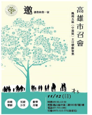 於主後2017年11月12日開始在鳳山區中崙社區,開始主日擘餅聚集。是由曹公1區增出曹公4區(中崙區),藍杏蓉姊妹家打開
